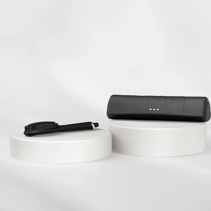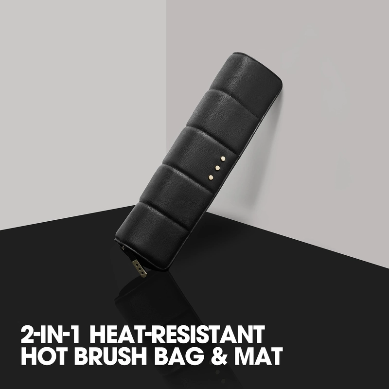 ghd 2-in-1 Heat-Resistant Hot Brush Bag & Mat er en elegant taske i kunstlæder er designet til ghd-varmebørster, der styler op til 185 °C, og er lige så stilfuld som praktisk. Rul tasken ud for at afsløre en beskyttende varmebestandig måtte, der giver dig et sikkert sted at lægge dit værktøj, mens du udøver din hårmagi.