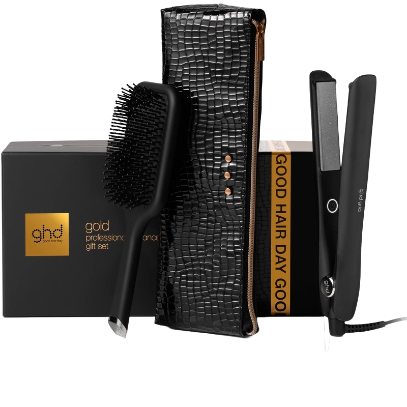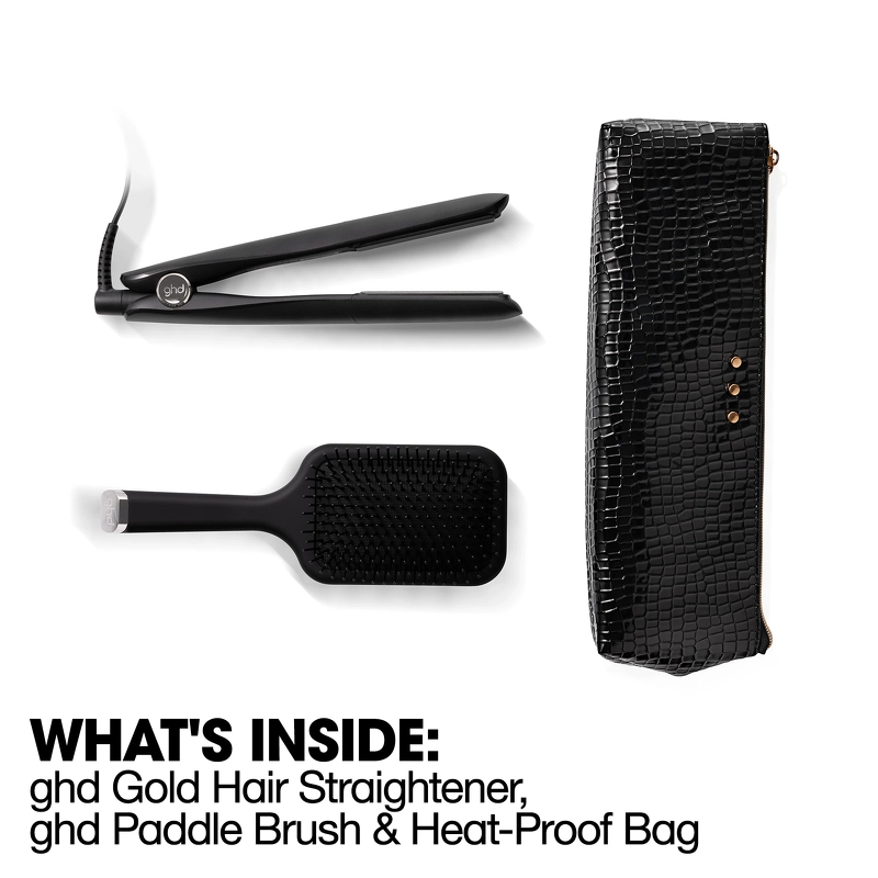 Oplev poleret perfektion til jul, og nyd tidløs styling med ghd Gold®-gavesættet med den professionelle og avancerede styler. Sammen med ghd All-Rounder-fladbørsten og en varmebestandig toilettaske er dette luksuriøse sæt din garanti for nemme, glatte hårdage med femstjernet finish.