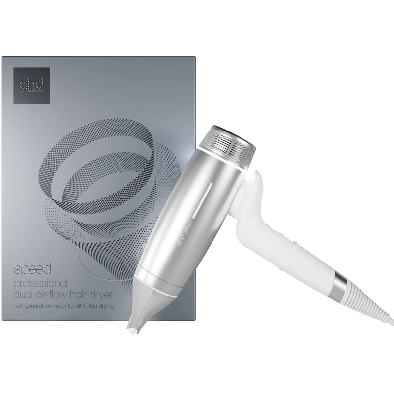 Forvandl din stylingrutine med ultrahurtig tørring og perfekte resultater i salonkvalitet. Takket være vores helt nye og meget hurtige motor, der roterer med 118.000 omdrejninger/min., leverer ghd Speed en højtryksluftstrøm på op til 174 km/t, som tørrer håret hurtigt fra rod til spids med den perfekte balance mellem hastighed, kraft og kontrol. Udviklet af ghd's ingeniører i samarbejde med ghd's professionelle stylister. Over 4000 forbrugere har deltaget i test og udvikling af ghd Speed. Konstrueret til at levere uovertruffen hurtig tørring – vores eksperter testede hundredvis af hårtørrere, og ikke én eneste var hurtigere end ghd Speed