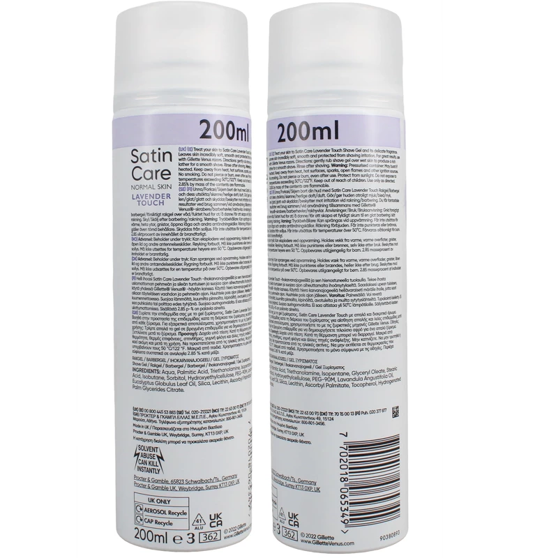 Gillette Satin Care Lavender Touch Shave Gel er en blødgørende barbergel, der efterlader huden smuk og glat. Denne barbergelé er velegnet til personer med normal hud. Den har en mild formel, som minimerer risikoen for irritation og rødme, og lader barberbladet glide let og ubesværet hen over huden uden at lave rifter.