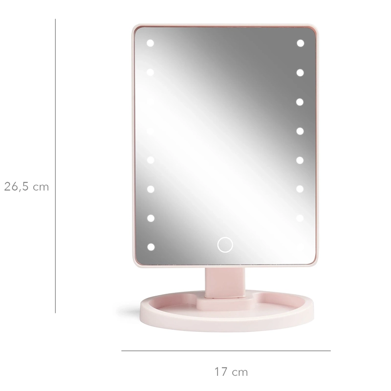 Spejlet er med touch-funktion, så det er let at tænde og slukke for lyset. Det kan også tiltes, så du nemt kan finde den optimale arbejdsvinkel. I spejlets fod er der desuden en lille bakke, som kan bruges til opbevaring af mindre genstande, som f.eks. hårnåle, smykker m.m.