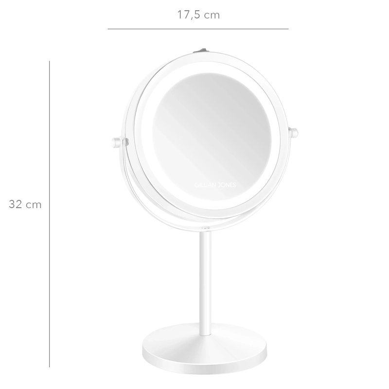 Gillian Jones Stand LED Light Mirror x10 - White er et super funktionelt og elegant makeupspejl i kobber med kraftigt LED-lys.