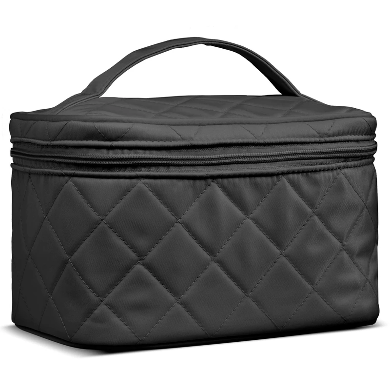 Denne beautyboks er ikke kun praktisk, den er også stilfuld. Det quiltede design og den elegante sorte farve gør den til et must-have til enhver kvinde. Uanset om du er på udkig efter en opbevaringsløsning til hjemmet eller til at have med på rejsen, så er denne beautyboks det perfekte valg. Med dens holdbare materiale og smarte design, vil den holde dine skønhedsprodukter organiseret og beskyttet, samtidig med at den tilføjer et strejf af luksus til din hverdag.
