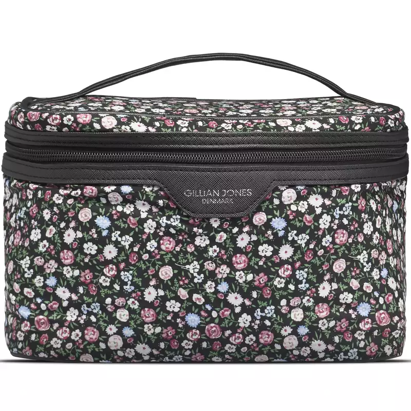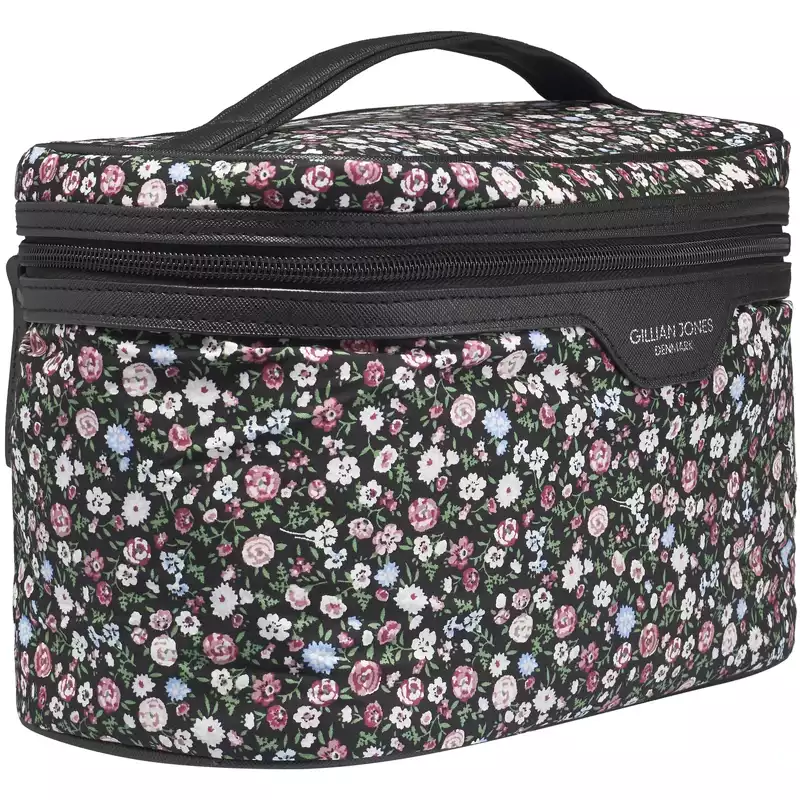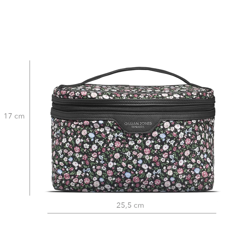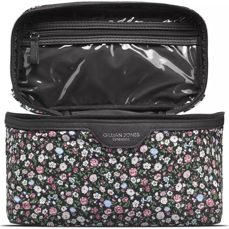 Gillian Jones Urban Travel Box er en stor og meget rummelig toilettaske i en smukt blomstret design. Der er et stort rum, hvor du kan have plads til alle dine yndlingsprodukter, samt en lomme indeni, hvor man kan opbevare mindre ting i. Toilettaskens praktiske størrelse gør den god til kvinden, der nødig vil mangle noget, selvom hun skal på ferie.
