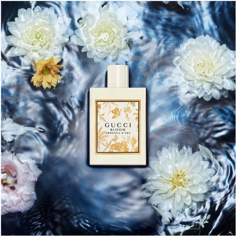 Oplev et strålende og sensuelt blomsterudtryk med Gucci Bloom Ambrosia d’Oro Eau de Parfum – en moderne duft, der løfter Bloom-kollektionens blomstrende karakter med gyldne accenter. Den er feminin, langtidsholdbar og skabt til at fremhæve en følelse af styrke og skønhed. Duften åbner med jasmine sambac absolute, som giver en klar og blomstrende friskhed. I hjertet udvikles Golden Queen-akkorden, en strålende og cremet fløjlsblød note, der tilfører både friskhed og gyldne dybder. Basen bygges op af tuberose absolute, som giver en sensuel varme og skaber en intensivt pudret, blød blomstring. Den elfenbensfarvede flakon med sit gyldne mønster afspejler duftens varme og elegante udtryk.