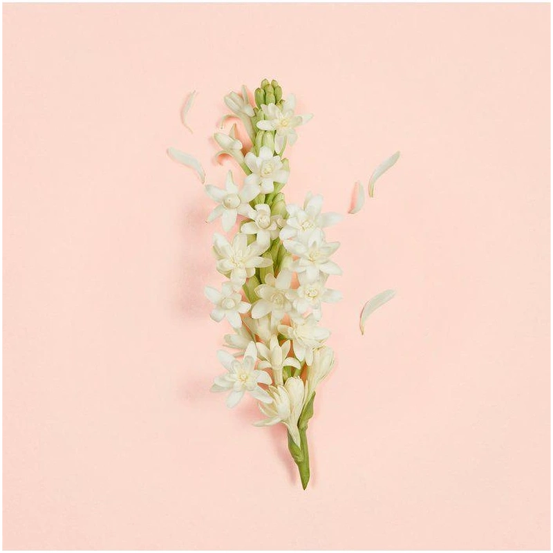 Den elfenbensfarvede flakon er prydet med et gyldent blomstermotiv, som giver et blødt og feminint udtryk. De raffinerede gulddetaljer fremhæver duftens elegante karakter og skaber en følelse af sofistikeret harmoni.
