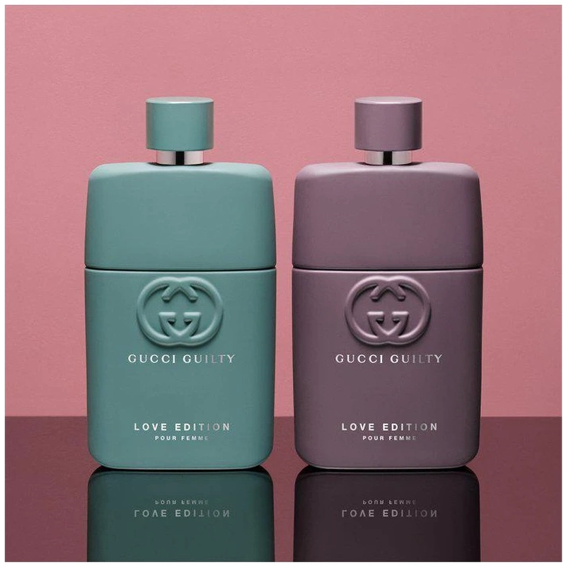 Gucci Guilty Love Edition Pour Homme & Pour Femme er to kraftfulde og passionerede dufte, skabt for at fejre kærligheden i alle dens former til Valentinsdag. Duoen udvisker grænserne mellem maskulint og feminint ved at have tilført dameduften en maskulin signaturnote og herreduften en feminin signaturnote.