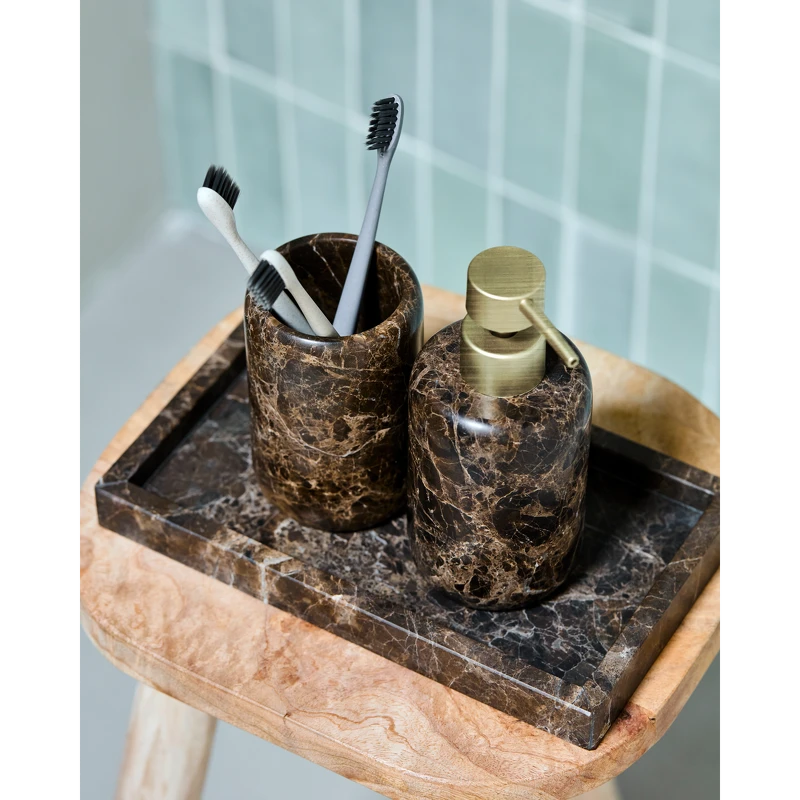 House Doctor Able Deco Tray - Brown er en elegant marmorbakke i smukke, brune nuancer, som giver et eksklusivt touch til din boligindretning.