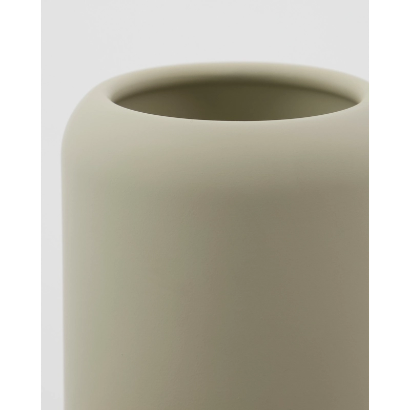 Kruset er fremstillet i råhvid resin, som er slidstærkt og nemt at rengøre, og har en blød, glat og mat finish, som er både raffineret og taktilt. Dets afrundede form, neutrale farve og minimalistiske design skaber et roligt og harmonisk udtryk.