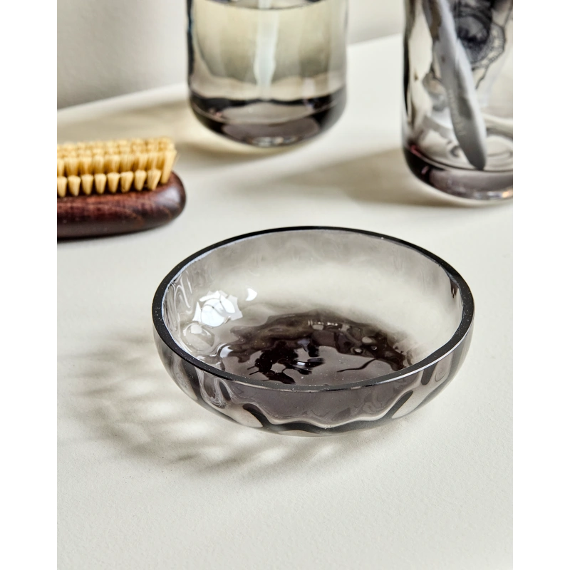 House Doctor Wah Soap Dish - Grey er en skulpturel glasskål med en organisk, håndlavet form.