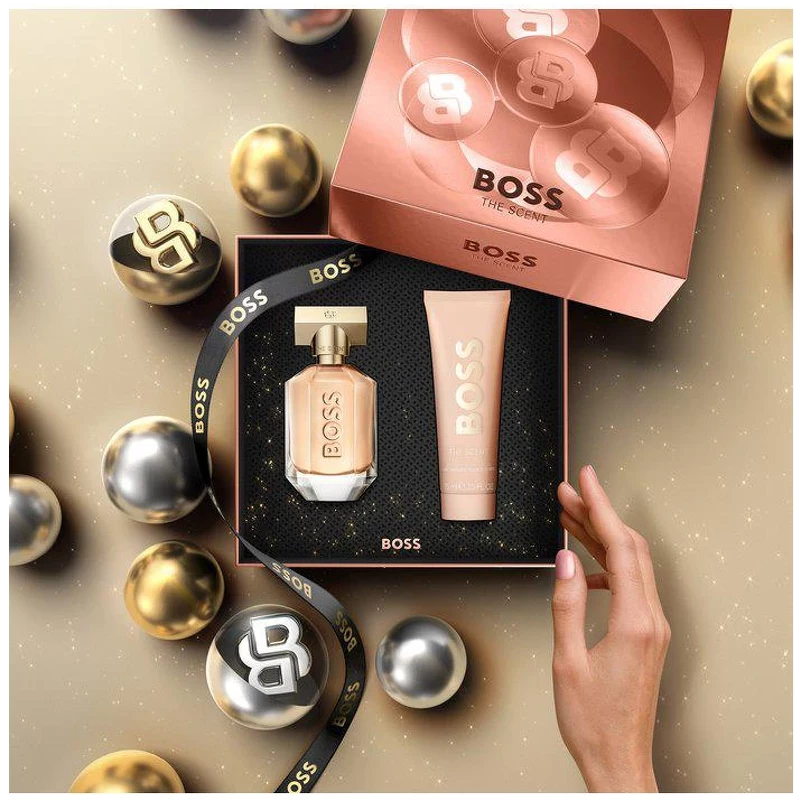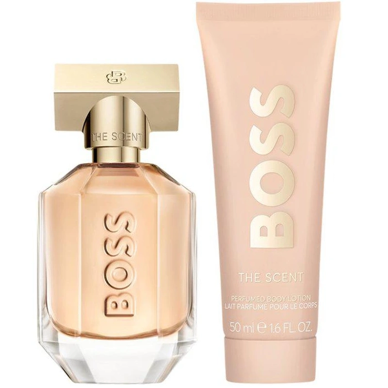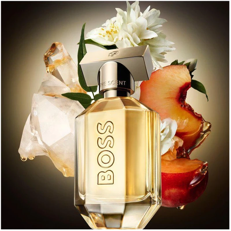 BOSS The Scent for Her EDP er en ikonisk dameduft, der udtrykker den stærke, ubestridelige kemi mellem to mennesker. Kompositionen med amber- og blomsterdufte forener intense kontraster for at skabe en uimodståelig tiltrækning. Saftig, naturlig ferskenekstrakt åbner med sprudlende energi, efterfulgt af fløjlsblød og fyldig osmanthus i hjertet. Duften afrundes med sensuelle hvide musknoter, der giver en varm og omsluttende fornemmelse. Flakonen er genopfyldelig og designet i en krystalklar silhuet, der afspejler duftens elegance. BOSS The Scent Body Lotion blødgør og gennemfugter huden og har de samme sensuelle og varme duftnoter som parfumen.