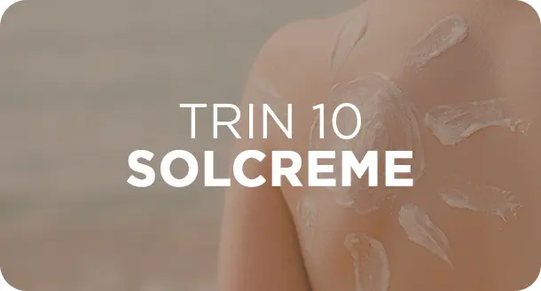 Det sidste og meget vigtige trin er at beskytte huden mod solens skadelige stråler med en solcreme. Solbeskyttelse er ikke blot vigtigt ift. at forhindre hudkræft, det har også stor betydning i kampen mod tidlige aldringstegn og hudproblemer. Skadelige UV-stråler er nemlig store syndere, når det kommer til rynker og hyperpigmentering, og så kan det forværre eksisterende problemer som akne, rosacea og sensitiv hud.