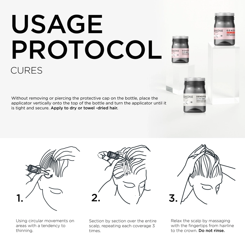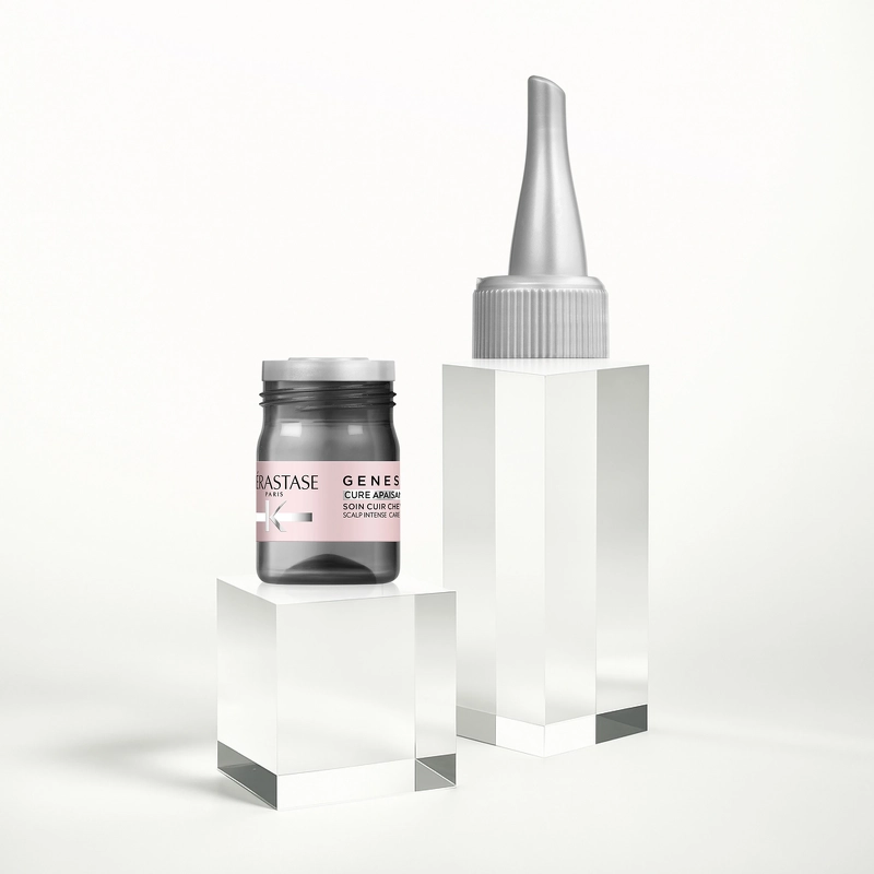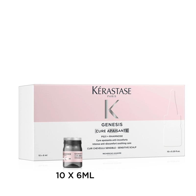 Genesis Cure Apaisante giver intens beroligende pleje til sensitiv hovedbund med PS21 og Rhamnose, der hjælper med at gendanne balancen i hovedbunden. Produktet modvirker de belastninger, som UV-stråler, vejrforhold, hårdt vand, kemiske behandlinger og slidende produkter kan forårsage, og virker øjeblikkeligt beroligende for en mere sund og komfortabel hovedbund.