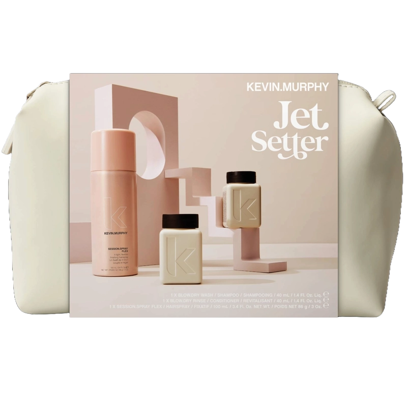 Kevin Murphy Jet Setter er en sampak, som er perfekt til dig, der altid er på farten! Denne gaveæske indeholder nemlig 3 helt fantastiske produkter i rejsestørrelse, samt en toilettaske, så man altid kan pleje og style sit hår uanset hvor man befinder sig.