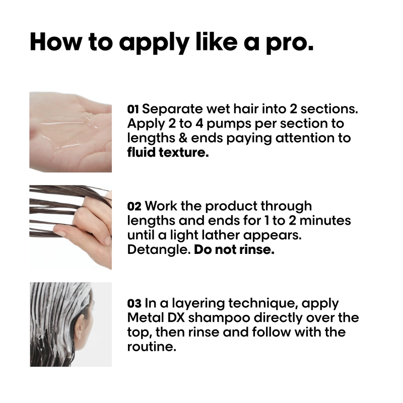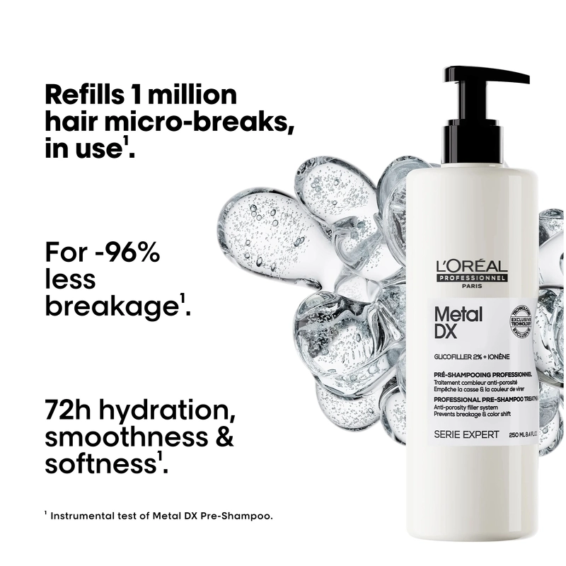 L'Oréal Professionnel Metal DX Pre-shampoo er et produkt der skal anvendes inden din almindelige shampoo.