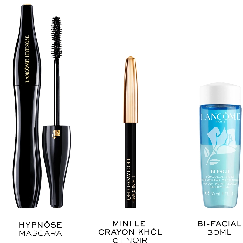 Hypnôse Mascara giver opbyggelig volumen, der kan tilpasses fra et naturligt look til dristig intensitet, samtidig med at den lette formel føles behagelig på vipperne og holder hele dagen. Le Crayon Khôl har en cremet tekstur, der glider ubesværet langs øjnene, hvilket giver mulighed for præcis definition eller en blødt blendet smokey effekt. Bi-Facil øjenmakeupfjerner fuldender rutinen ved hurtigt at fjerne genstridig og vandfast makeup, og efterlader huden ren, frisk og velplejet uden irritation.