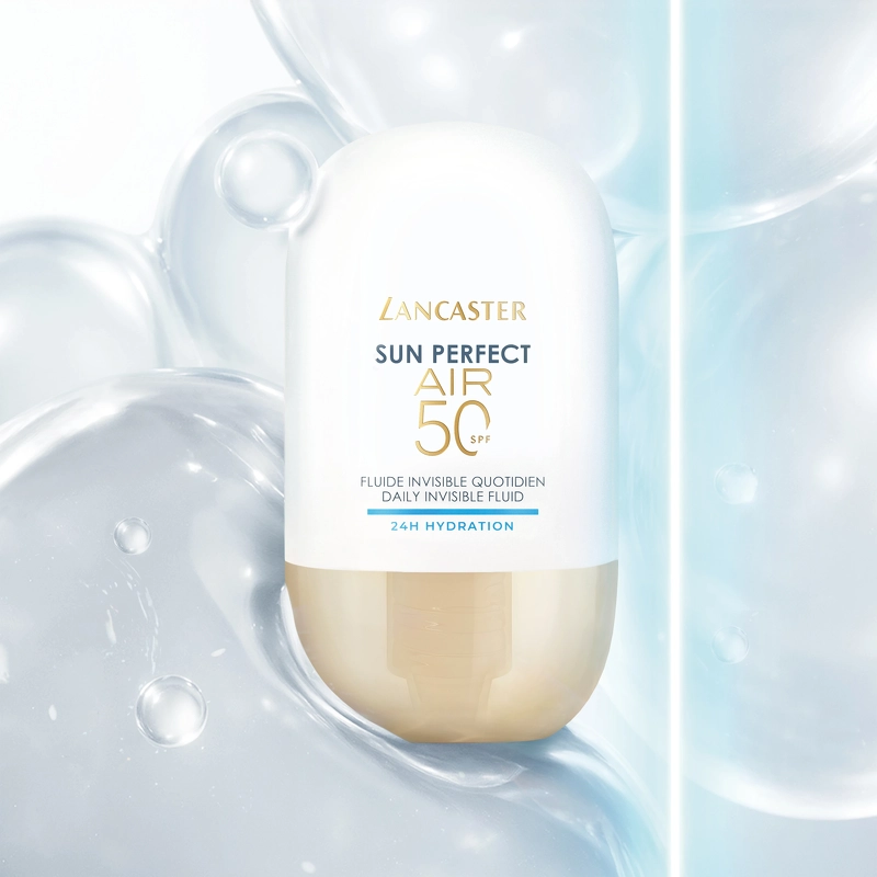 ^97 % oplevede en fyldigere og mere fugtet hud efter 1 uge^^100 % sagde, at huden så og føltes glattere efter 2 uger^^^ Klinisk studie på 30 kvinder efter én påføring af Sun Perfect AIR Daily Invisible Fluid SPF50 24H Hydration.*^^Forbrugertest på 63 kvinder efter brug af Sun Perfect AIR Daily Invisible Fluid SPF50 24H Hydration to gange dagligt i 4 uger. Lancasters Sun Perfect-serie kombinerer avanceret solbeskyttelse med hudplejeinspirerede anti-ageing-formler – til daglig, effektiv UV-beskyttelse med en ultralet og usynlig fornemmelse. Med Full Light Technology™ og målrettede aktive komplekser beskytter serien mod hele lysspektret og hjælper med at forbedre hudens udseende samt modvirke tegn på fotoaldring.