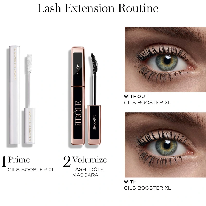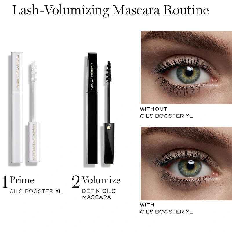 Lancôme Mascara Cils Booster XL Base Volume er en utrolig god mascara base, der skal påføres inden brug af mascara. Denne hvide base reparerer og forstærker de ødelagte øjenvipper. Derudover udglatter og beskytter den vipperne, så det er nemmere at lægge selve mascaraen, og derved bliver øjenvipperne også pænere at se på. Lancôme Mascara Cils Booster XL Base Volume indeholder fibre, som gør at øjenvipperne bliver længere og mere fyldige.