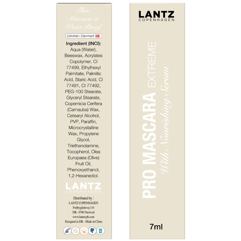 Pro Mascara Extreme er beriget med bivoks, som tilfører fleksibilitet og struktur, beskytter vipperne og giver mascaraen en cremet konsistens med et naturligt svaj. Den indeholder desuden et plejende vippeserum med olivenolie og E-vitamin, der styrker og nærer vipperne i dybden for et sundt og smukt resultat hver gang. Mascaraen er parfumefri og skånsom, udviklet til at give maksimal effekt med høj komfort – selv for de mest sensitive øjne.