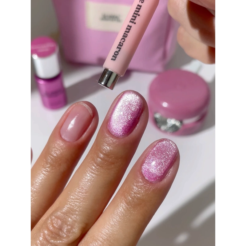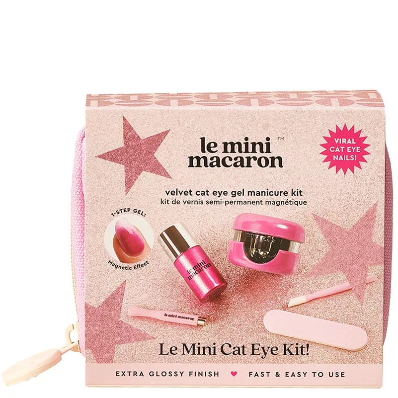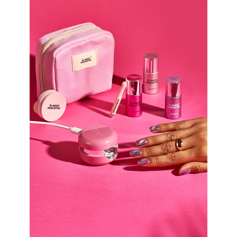 Le Mini Macaron Gel Manicure, Cat Eye Travel Kit - Cosmopolitan Velvet er et revolutionerende starterkit til hjemmebrug. Disse gel-neglelakker er udviklet af professionelle neglesaloner, og de har en holdbarhed på op til 14 dage. Gel-neglelakkerne er et genialt 3-i-1 system, som er en basecoat, farve og topcoat i en og samme lak. Neglelakken er designet til at beskytte mod hudirritationer eller gener, og lampen er designet med LED-lys, som ikke er skadeligt for huden, som UV-lys kan være. Denne lak har en smuk lyserød farve, som har en fantastisk flot glans og giver smukke og elegante negle.