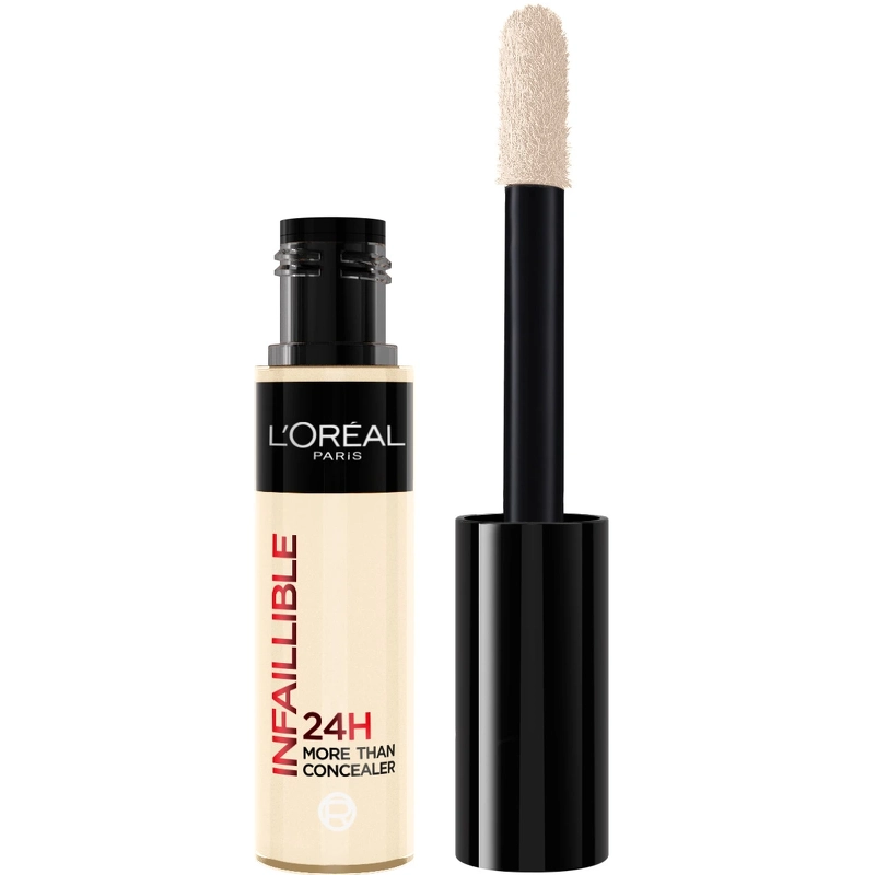 L'Oréal Paris Cosmetics Infaillible More Than Concealer - 326 Neutral har en ekstra høj dækkeevne, så den dækker selv de mørkeste rande under øjnene. Denne concealer er udviklet med et ekstra stort applikatorhoved, hvilket gør den ideel til contouring, dækning af urenheder og sågar som foundation. Trods den høje dækkeevne føles den let og silkeblød på huden i op til 24 timer.