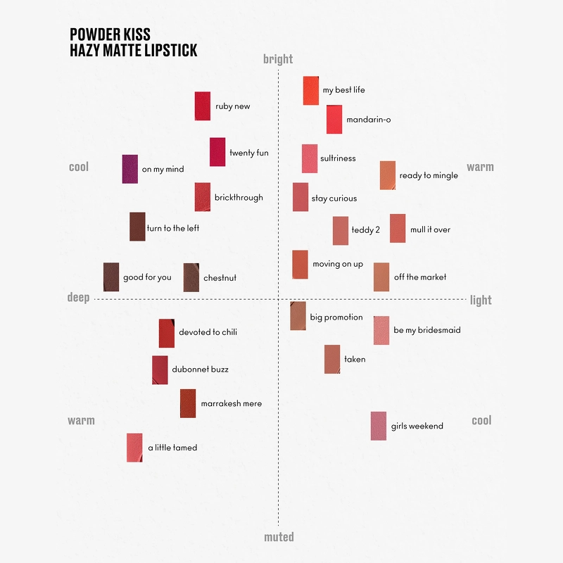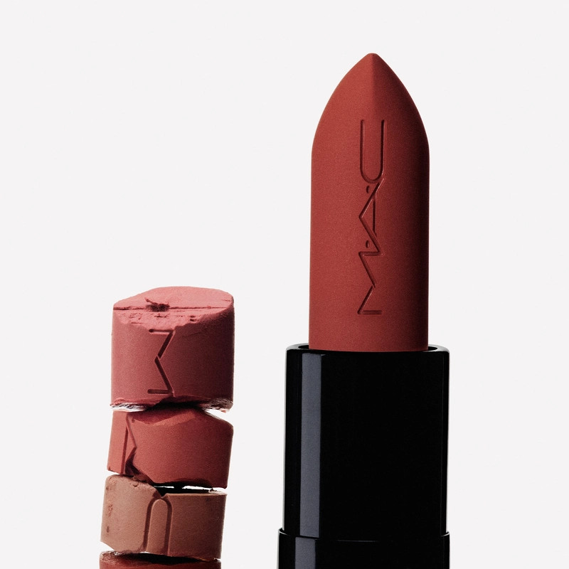 MAC Powder Kiss Hazy Matte Lipstick - Good For You! er en mat læbestift, der giver et soft focus og let pudret look til dine læber. Formuleret med fire soft-focus pudre giver denne hazy matte Lipstick en perfekt, sløret effekt og opbyggelig dækning fra transparent til medium – samt 10 timers fugtgivende holdbarhed.