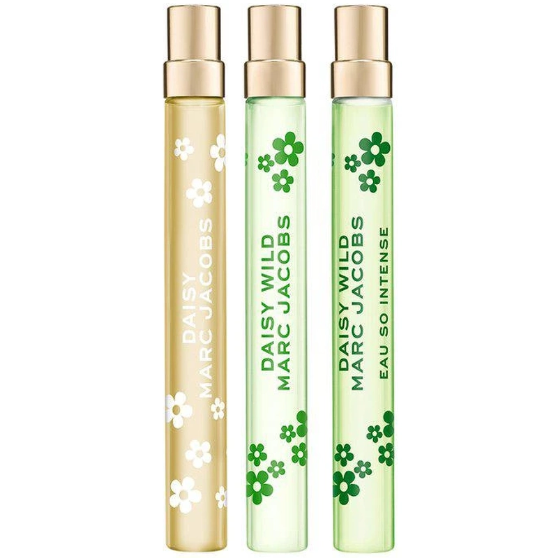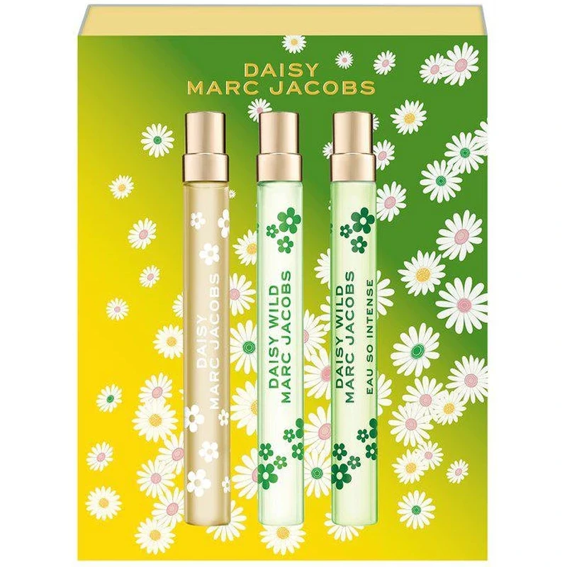 Forkæl dig selv – eller én, du holder af – med en virkelig RE[MARC]ABLE gave til jul! Dette charmerende Daisy Trio Purse Spray Gavesæt fra Marc Jacobs indeholder tre ikoniske Daisy-dufte i praktiske rejsestørrelser – perfekte til at tage med dig overalt. Hver duft har sin egen unikke personlighed: Daisy Eau de Toilette er optimistisk, sofistikeret og uimodståelig feminin. Daisy Wild Eau de Parfum er livlig, frisk og blomstrende med følelsen af en vild blomstereng. Daisy Wild Eau So Intense tager dig med på en uforglemmelig duftrejse, hvor eksotisk bananblomst smelter sammen med jasminekstrakt, sandeltræ og varm amber – som en blomstrende drøm med et strejf af eventyrlyst.