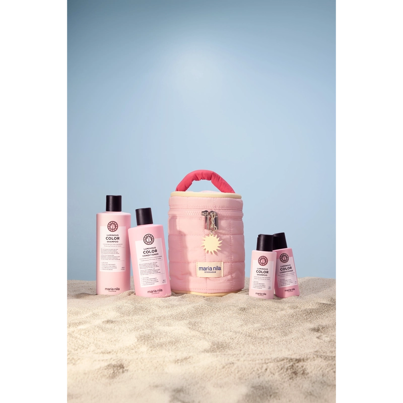 Maria Nila Beauty Bag SS26 Luminous Color er en utrolig lækker sampak, som indeholder shampoo og conditioner, der er specielt udviklet til et farvebehandlet hår. Produkterne har en genopbyggende virkning, og sørger for at holde håret glansfuldt.