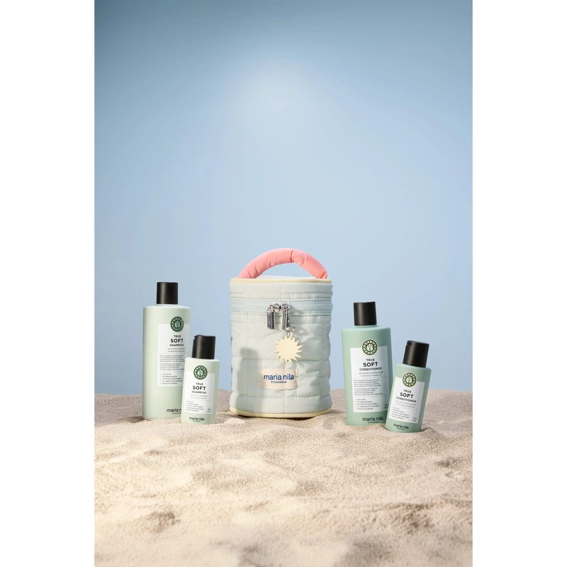 Maria Nila Beauty Bag - True Soft er en utrolig lækker sampak, som indeholder shampoo og conditioner, der er specielt udviklet til et tørt hår. Produkterne indeholder blandt andet arganolie, som har en blødgørende virkning, som som modvirker krus og statisk elektricitet, samtidig med at det giver håret en smuk glasfuld finish.