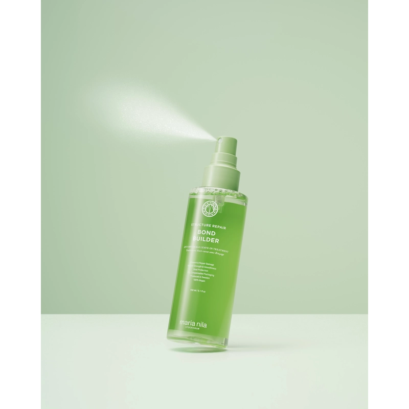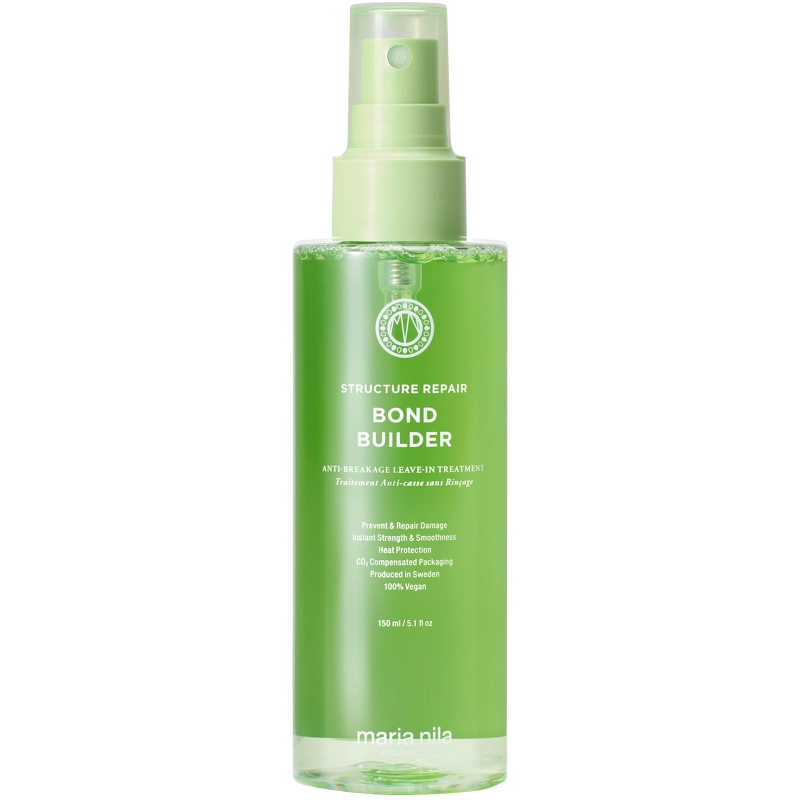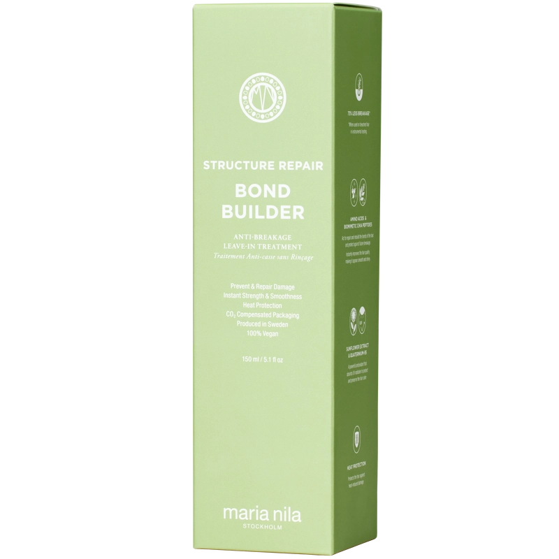 Maria Nila Structure Repair Bond Builder er en unik multifunktionel bond builder og leave-in behandling i ét. I takt med teknologiens udvikling præsenterer Maria Nila stolt den første multifunktionelle bond builder, der genopbygger de interne bindinger og beskytter keratinstrukturen, beskytter mod varme, styrker overfladen og giver øjeblikkelig blødhed og glans.