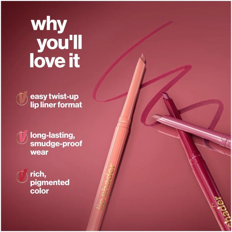 Mød Max Factors 2000 Calorie Lip Shader – en drejbar læbepen, der former, farver og definerer med perfekt præcision. Skab naturlige, fyldige og mere konturerede læber med en klæbefri formel, der holder hele dagen. Brug den spidse side til at definere langs eller over læbekanten, og den brede, skrå side til at blødgøre kanter eller udfylde helt for en fyldigere effekt. Læbepennen glider let over læberne og giver en intens farve – ingen spidsning er nødvendig, perfekt til touch-ups, når du er på farten.