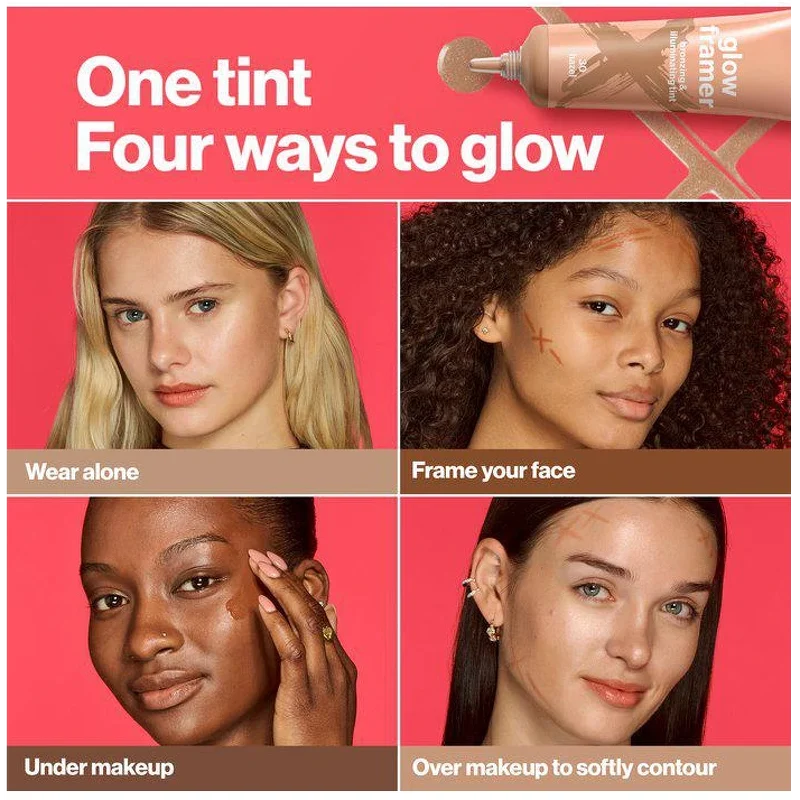 Max Factor Glow Framer Skin Tint er en glødgivende skin tint, der fremhæver og definerer dine naturlige ansigtstræk. Den vægtløse formel med let shimmer og bronzing-pigment smelter ind i huden og giver en jævn finish med naturlig glød. Afhængigt af nuancen kan den bruges som bronzer, highlighter eller all-over tint for et friskt, strålende udseende. Glow Framer gør det nemt at skabe dimension og glød – uden flere trin eller avancerede teknikker. Brug den under eller over makeup for at fremhæve ansigtstrækkene og tilføre glow, eller alene for et naturligt, strålende look.
