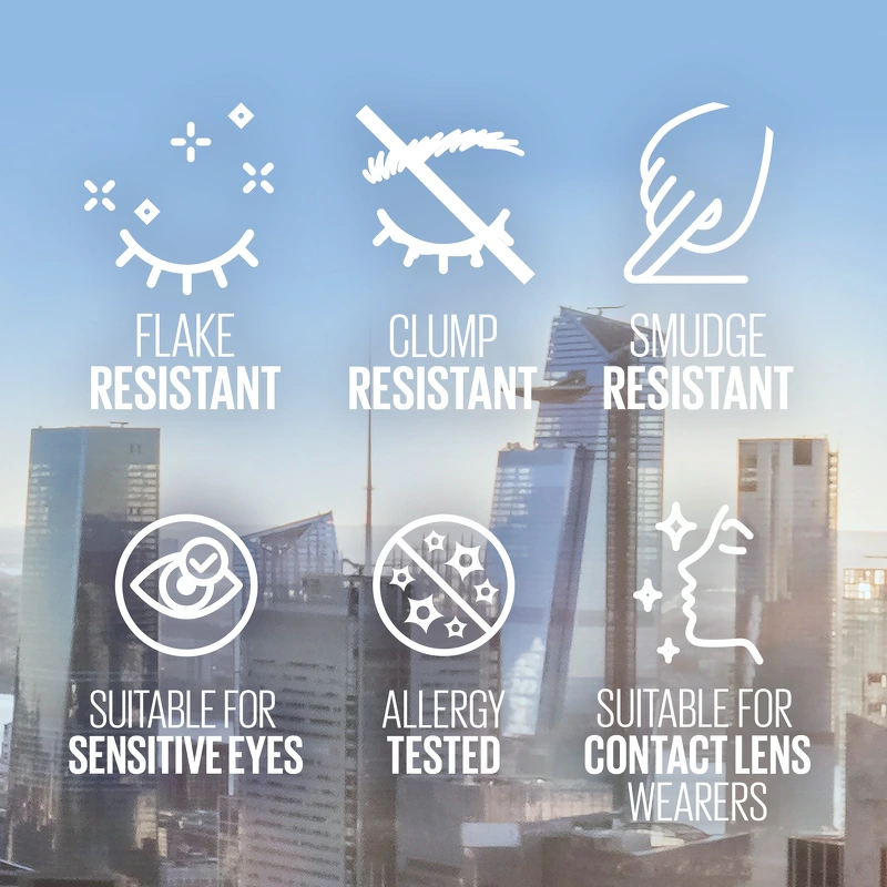 Formlen er beriget med bambusekstrakt og fibre, som giver lange, fyldige og lette vipper, og den bøjelige Flex Tower mascarabørste er med til at sikre volumen og længe fra rod til spids. Den er velegnet til sensitive øjne og kontaktlinsebrugere.