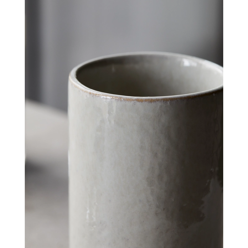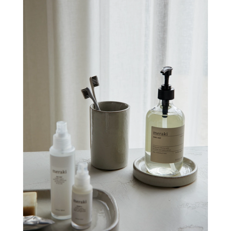 Giv dit badeværelse, køkken eller skrivebord et afslappet look med denne beholder. Den grå glasur og det enkle design gør den så alsidig, at du kan bruge den præcis, som du vil - som tandkrus eller til opbevaring af mindre redskaber i køkkenet eller på kontoret. Du kan også bruge den til dine makeup-produkter og små hverdagsgenstande, der skal fremhæves.