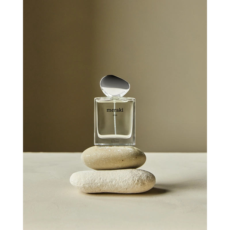 Meraki Echo EDT er en frisk og samtidig dyb unisex eau de toilette med en varm og træagtig duft, der afbalanceres af lyse citrusnoter og et strejf af krydderi.