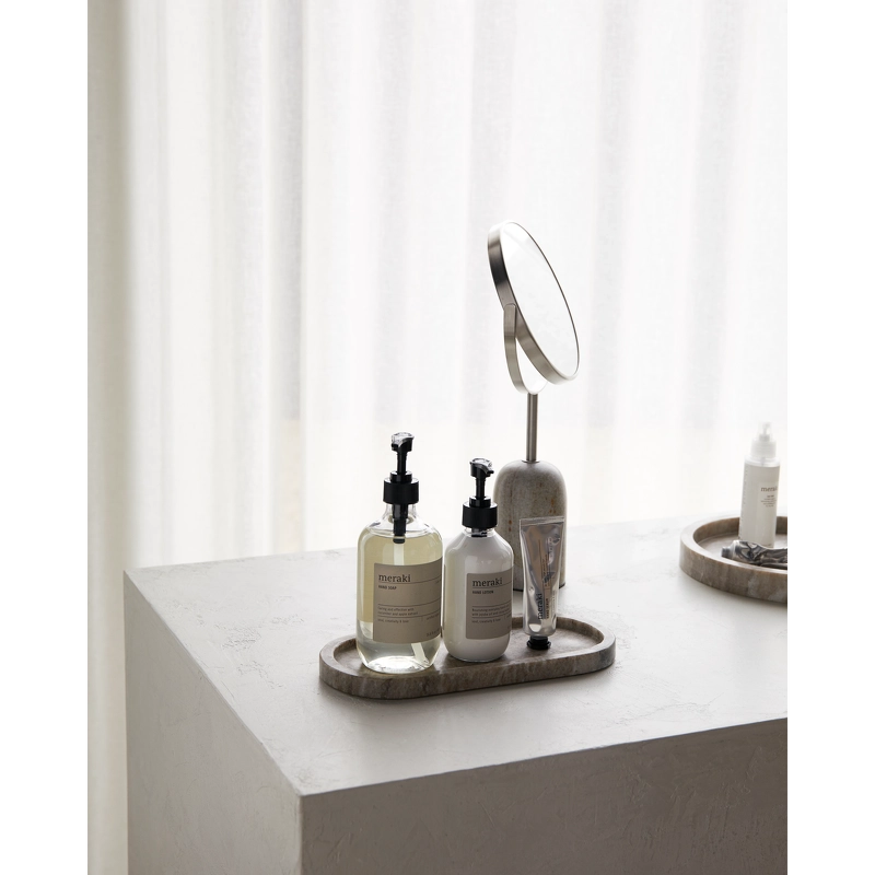 Hold styr på din samling af sæber, cremer og meget andet med denne tidløse og minimalistiske marmorbakke fra Meraki. Størrelsen passer perfekt til 3 Meraki-flasker, selvom den selvfølgelig også er designet til opbevaring af andre favoritter - fra toiletartikler til makeup og smykker.