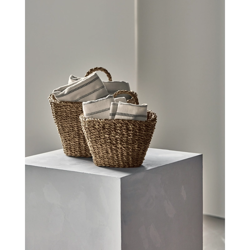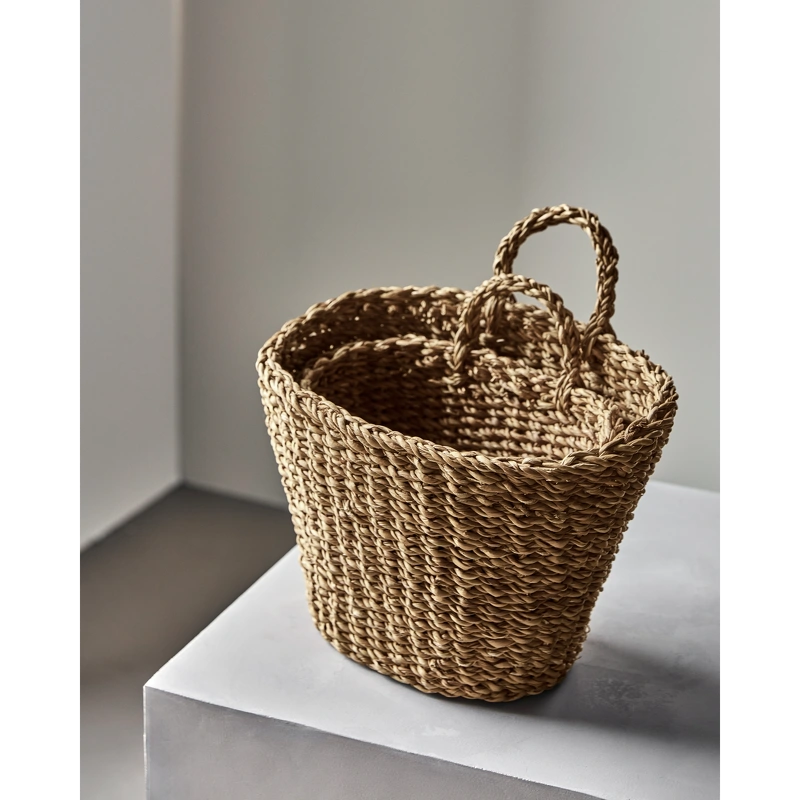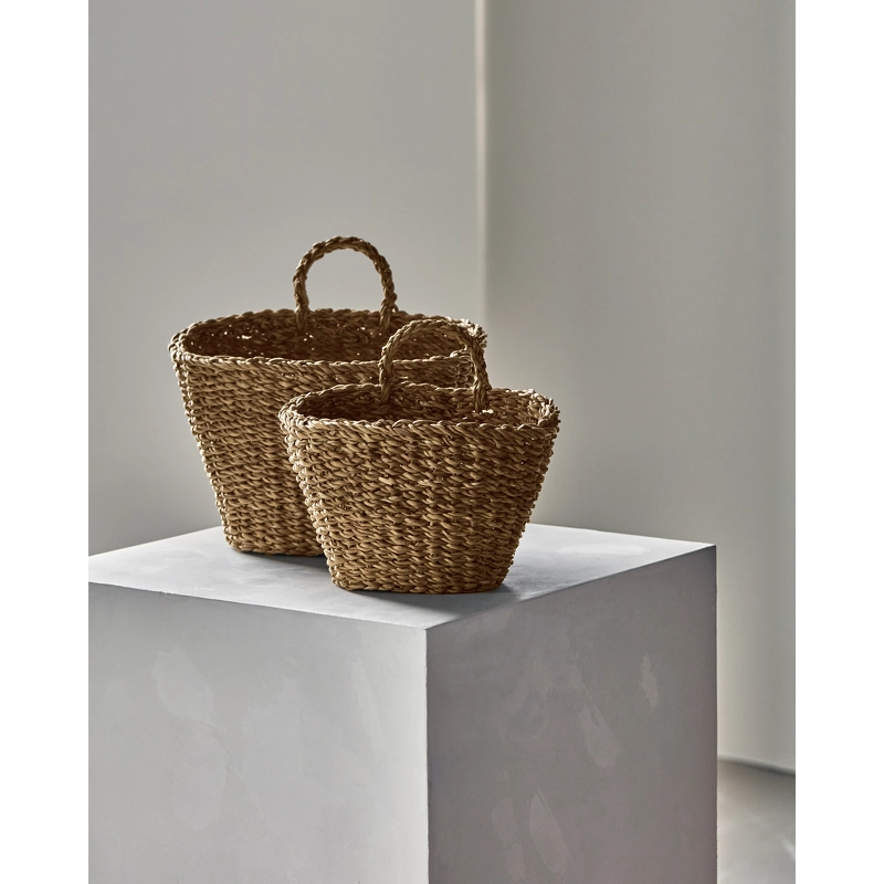 Kurvene er designet med håndflettede detaljer og praktiske hanke, som gør det let at hænge dem på knager i badeværelset, soveværelset eller køkkenet. Det naturlige udtryk tilføjer varme og hygge, uanset om du opbevarer tekstiler eller hænger friske urter op for et dekorativt touch.
