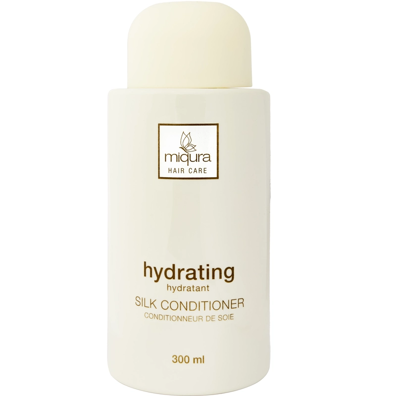 Miqura Hydrating Silk Conditioner er en fugtgivende silke-conditioner, der plejer håret i dybden og efterlader det blødt og glansfuldt. Den kan bruges til alle hårtyper, men er særlig velegnet til tørt og skadet hår.