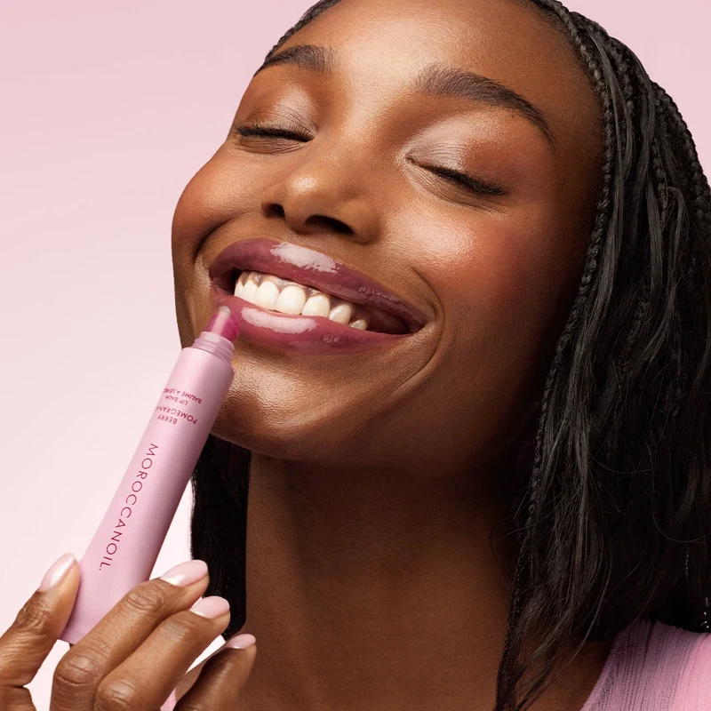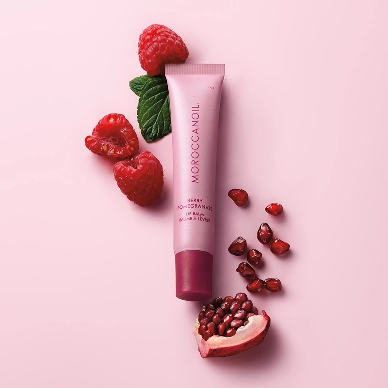 Moroccanoil Lip Balm Berry Pomegranate har en frisk, frugtig duft og en diskret bærfarvet tint. Den efterlader læberne friske og med en naturlig glans – uden at læberne føles klistrede.