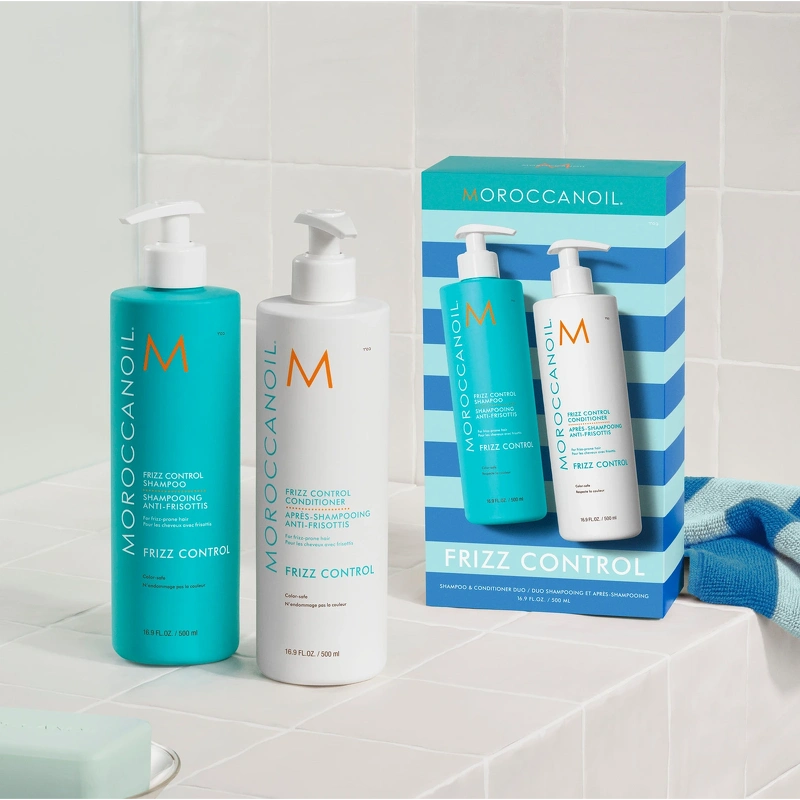Moroccanoil Frizz Control Duo Box er en lækker boks bestående af Frizz Control shampoo 500 ml. og Frizz Control conditioner 500 ml.
