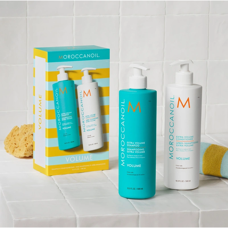 Moroccanoil Volume Duo Box er en lækker boks bestående af Extra Volume shampoo 500 ml og Extra Volume conditioner 500 ml. Den perfekte duo til dig med fint eller normalt hår.