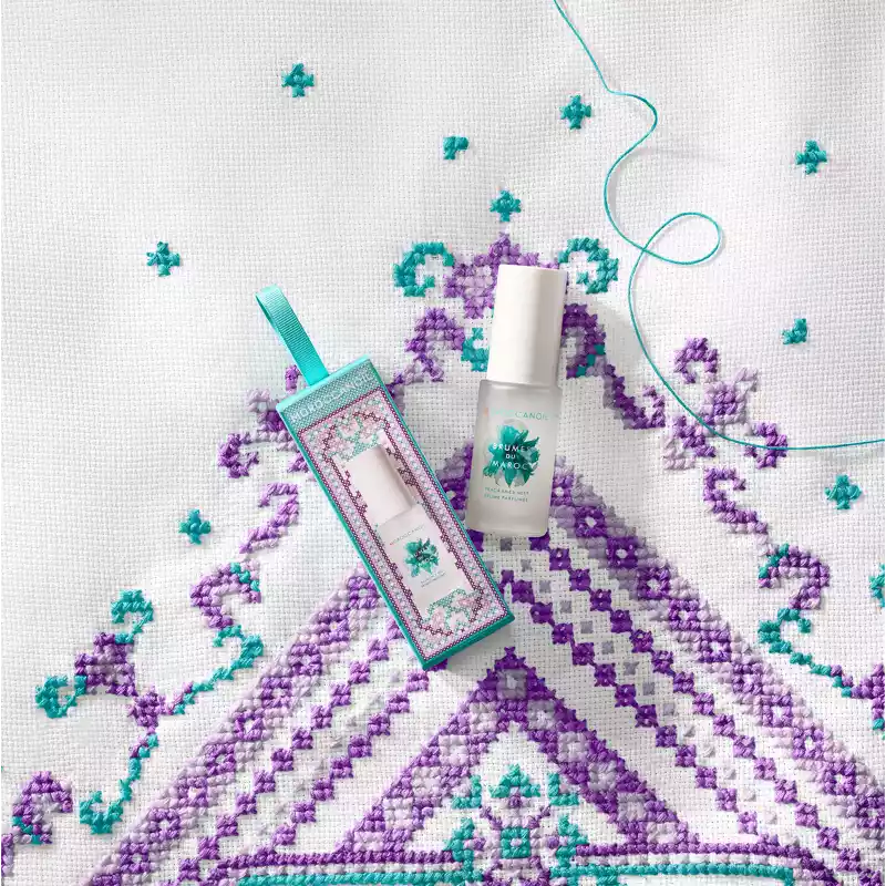 Æsken indeholder Brumes Du Maroc, en forfriskende mist til både hår og krop, som har Moroccanoils ikoniske signaturduft ”Fragrance Originale”, der er en blanding af krydret rav og søde blomsternoter. En duft der henleder til det eksotiske middelhavsområde og som vækker sanserne.