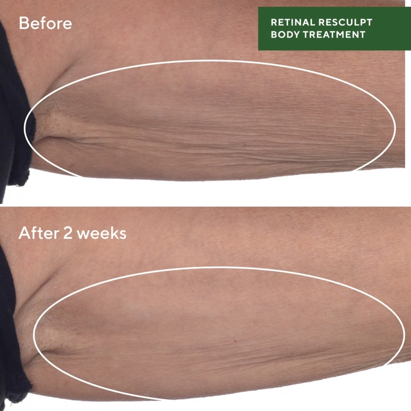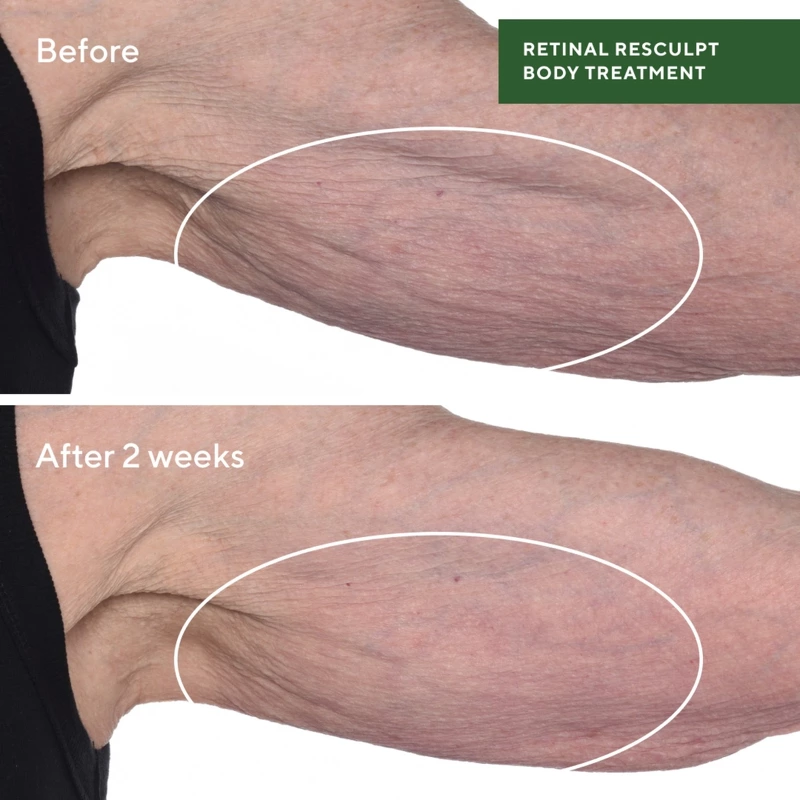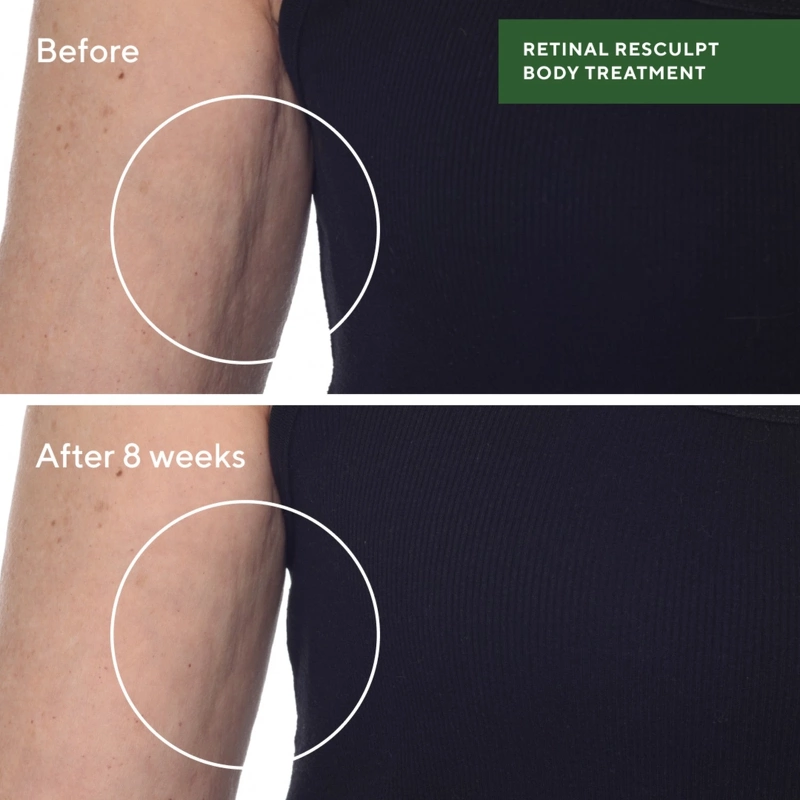 Har du oplevet fordelene ved brug af hudpleje med retinal til ansigt og omkring øjne? Nu kan din krop også få glæde af disse fordele. Dette daglige udglattende ritual er målrettet områder på kroppen, der udfordrer dig; appelsinhud, strækmærker, ujævn og slap hud, mens huden tilføres intens fugt for et fastere udseende.