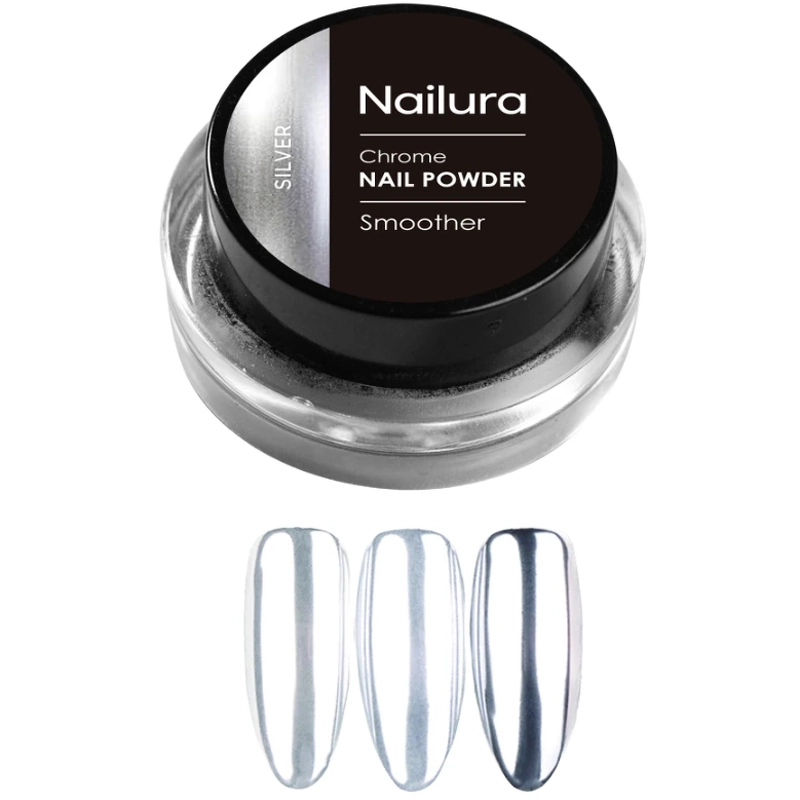Nailura Chrome Powder er et fint pigmentpulver, der giver neglene et smukt, metallisk spejleffekt på neglene. Det påføres oven på en hærdet, let klæbrig geléoverflade, gnides ind med en Silicone Rod, og afsluttes med Top Coat for at forsegle effekten og sikre lang holdbarhed.