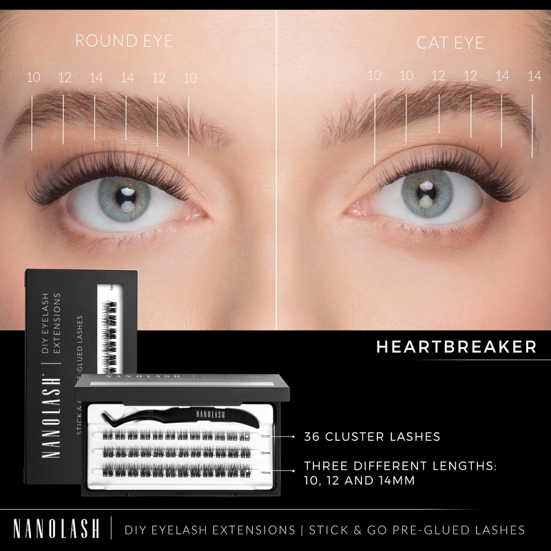 Nanolash DIY Eyelash Extensions Stick & Go Pre-glued Lashes - Heartbreaker
