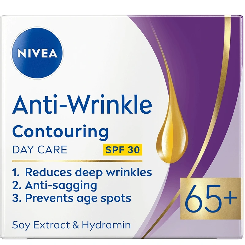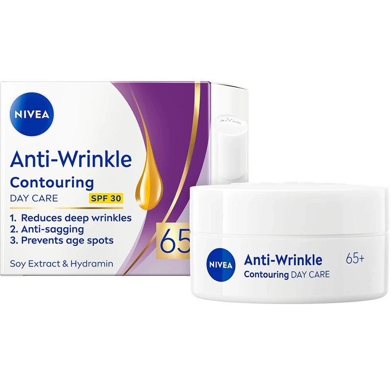 Nivea Anti-Wrinkle Contouring Day Cream 65+ SPF 30 er en effektiv dagcreme, som forbedrer konturerne på krævende, moden hud og bekæmper dybe rynker.
