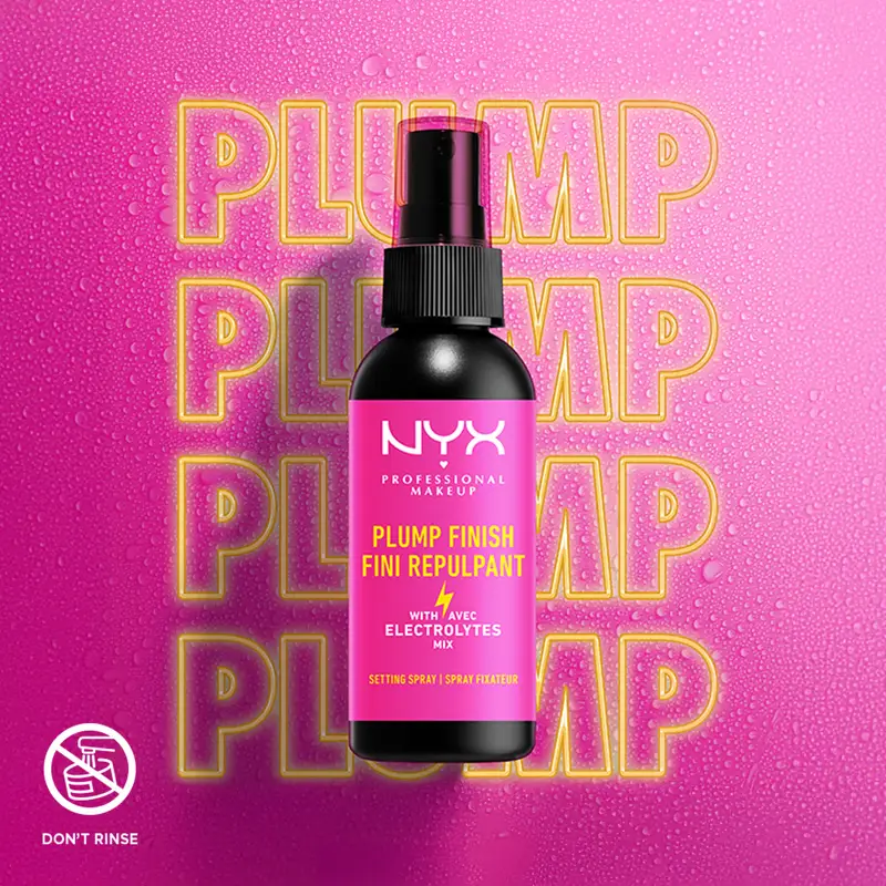NYX Prof. Makeup Setting Spray Plump Finish skal blot sprayes i hele ansigtet, tørre i 60 sekunder, og derefter er du 'good to go'.