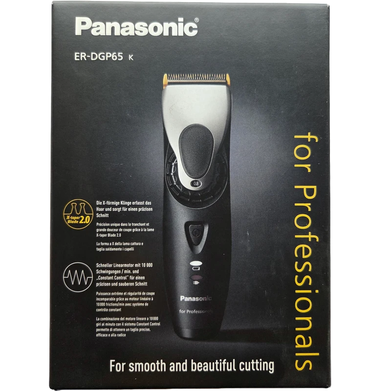 Panasonic ER-DGP65 hårklipperen fra Panasonic for Professionals-linjen er konstrueret til præcision og lethed, hvilket gør den til et vigtigt værktøj for enhver professionel. Denne klipper tilbyder en problemfri klippe-oplevelse med sine X-taper 2.0-klinger drevet af en lineær motor, der sikrer konstant kontrol og nøjagtighed i hvert snit. Inkluderingen af kamtilbehør giver mulighed for en bred vifte af stylingmuligheder, fra 3 mm til 15 mm, suppleret med præcise længdeindstillinger for detaljeret arbejde.