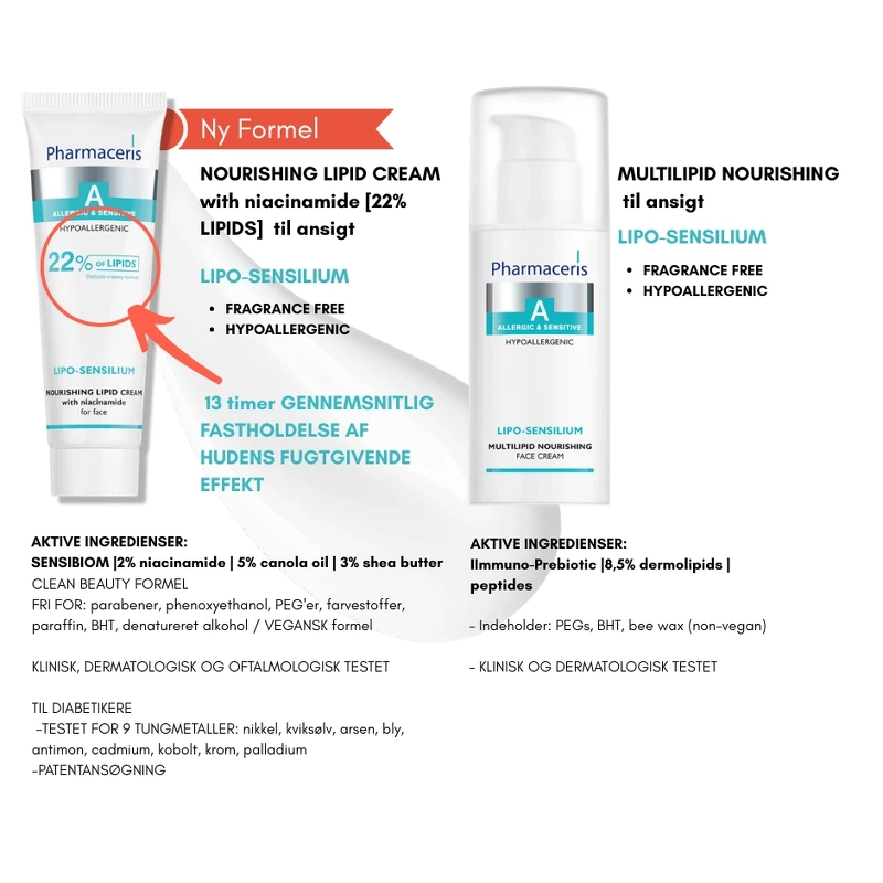 Pharmaceris A Lipo-Sensilium Nourishing Lipid Face Cream er en nærende lipidcreme velegnet til daglig pleje af tør, sensitiv og allergisk hud i ansigtet.
