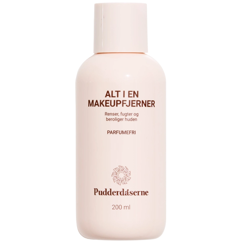 Pudderdåserne Alt I En Makeup Fjerner er en super effektiv og lækker makeupfjerner, der kan bruges til alle hudtyper og til både ansigts og øjenmakeup. Den er mild og skånsom mod huden, men fjerner stadig din vandfaste læbe- øjen- og ansigtsmakeup til perfektion, så du efterlades med en ren hud, der er helt klar til din daglige hudpleje rutine. Den er beriget med hyaluronsyre og andre fugtgivende ingredienser, så du udover at få en ren og frisk hud, også sikrer at den ikke tørrer ud, samtidig med at den beroliger de steder hvor huden kan føles irriteret. Et must-have til dig der længe har ledt efter ét produkt du kan bruge til det hele, og som hverken generer din sarte hud omkring øjnene, eller er for skrap til ansigtet.